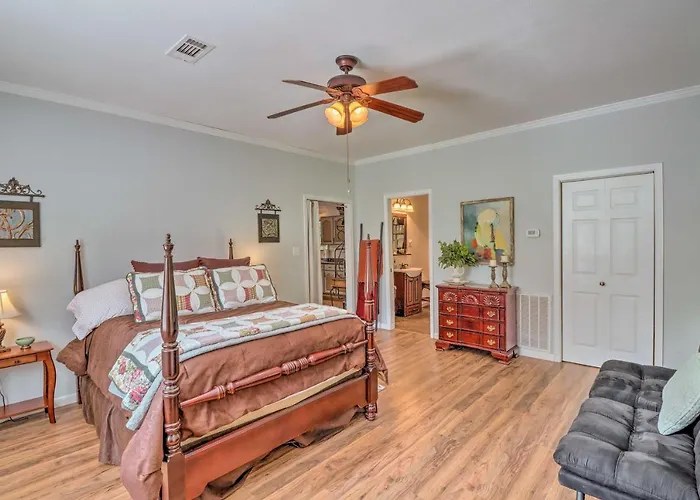 The 4-bedroom Gorgeous Drasco Home Near Greers Ferry Lake! is less than around 10 minutes' drive from Old Highway 25 Recreation Areas. There is a fully-fitted kitchen with a refrigerator, an oven, and kitchenware while 4 bathrooms are included as well.